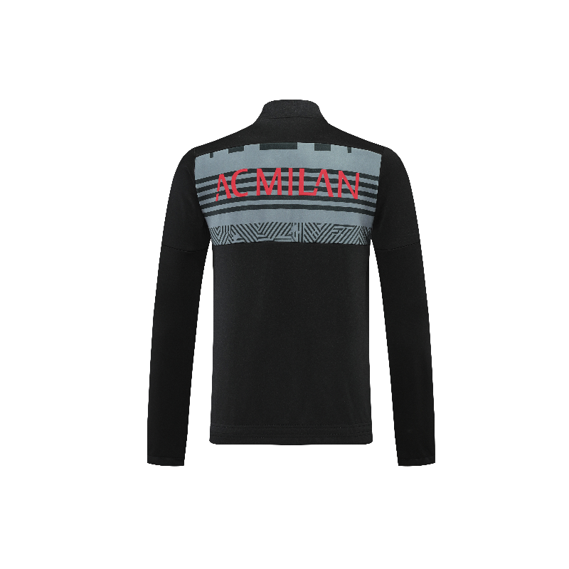 La giacca AC Milan 2022 si distingue per il suo colore principale nero, arricchito da motivi geometrici grigi sul petto e sulla schiena. Questo design crea un effetto visivo moderno e raffinato, perfetto per chi vuole portare con sé l’eleganza rossonera anche fuori dal campo.
