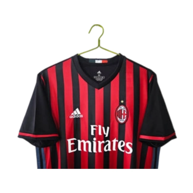 La maglia home dell’AC Milan per la stagione 2016-17 si distingue per il suo stile grintoso e moderno: le iconiche strisce verticali rossonere sono reinterpretate con un effetto sfumato, dove il rosso scuro si fonde con il nero profondo per creare un look aggressivo e contemporaneo.