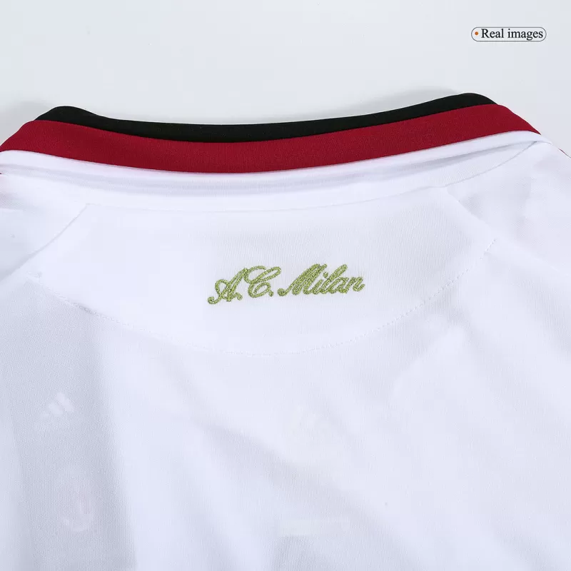 Il bianco predominante simboleggia la determinazione e la purezza di uno spirito combattivo, mentre i tocchi di rosso e nero rimandano alle radici storiche della squadra. Indossare questa maglia significa portare con sé un pezzo autentico della storia rossonera, perfetto per chi ama rivivere momenti unici o arricchire la propria collezione con un capo ricco di valore e significato.
