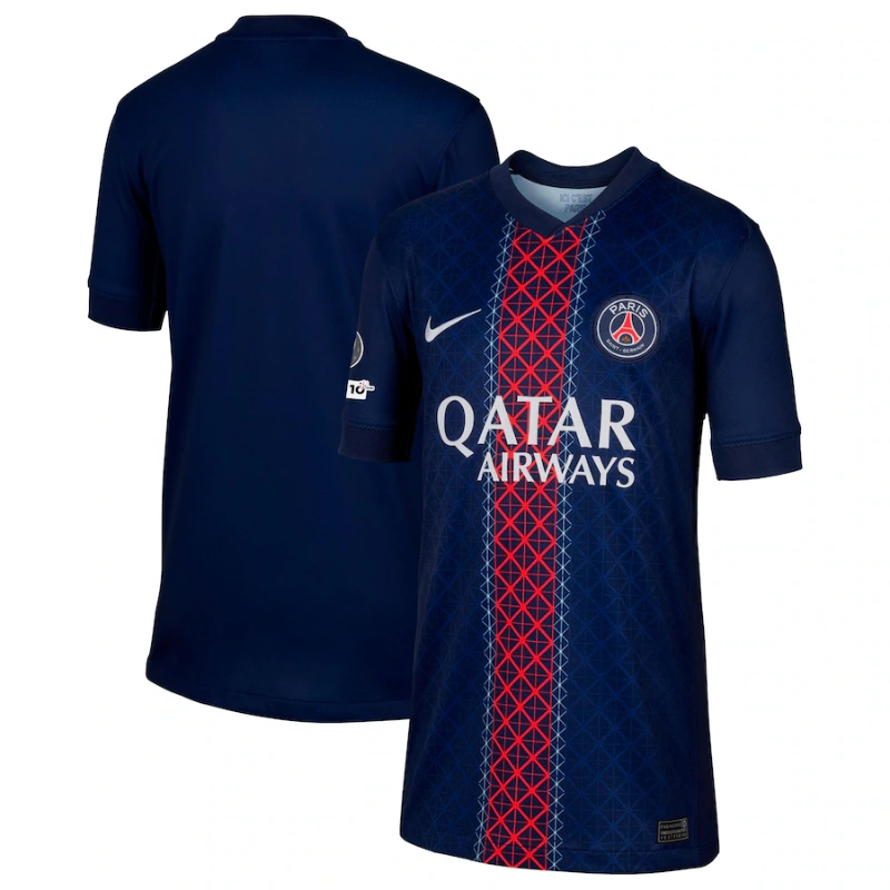 La maglia casa del Paris Saint-Germain per la stagione 2025-26 rappresenta un perfetto equilibrio tra tradizione e innovazione. Questo modello blu marino è caratterizzato da dettagli rossi e bianchi, colori storici del club, che richiamano la bandiera di Parigi. La stagione 25-26 è stata particolarmente significativa per il PSG, con una squadra giovane e ambiziosa che ha lottato per confermare il proprio dominio sia in Ligue 1 sia nelle competizioni europee.